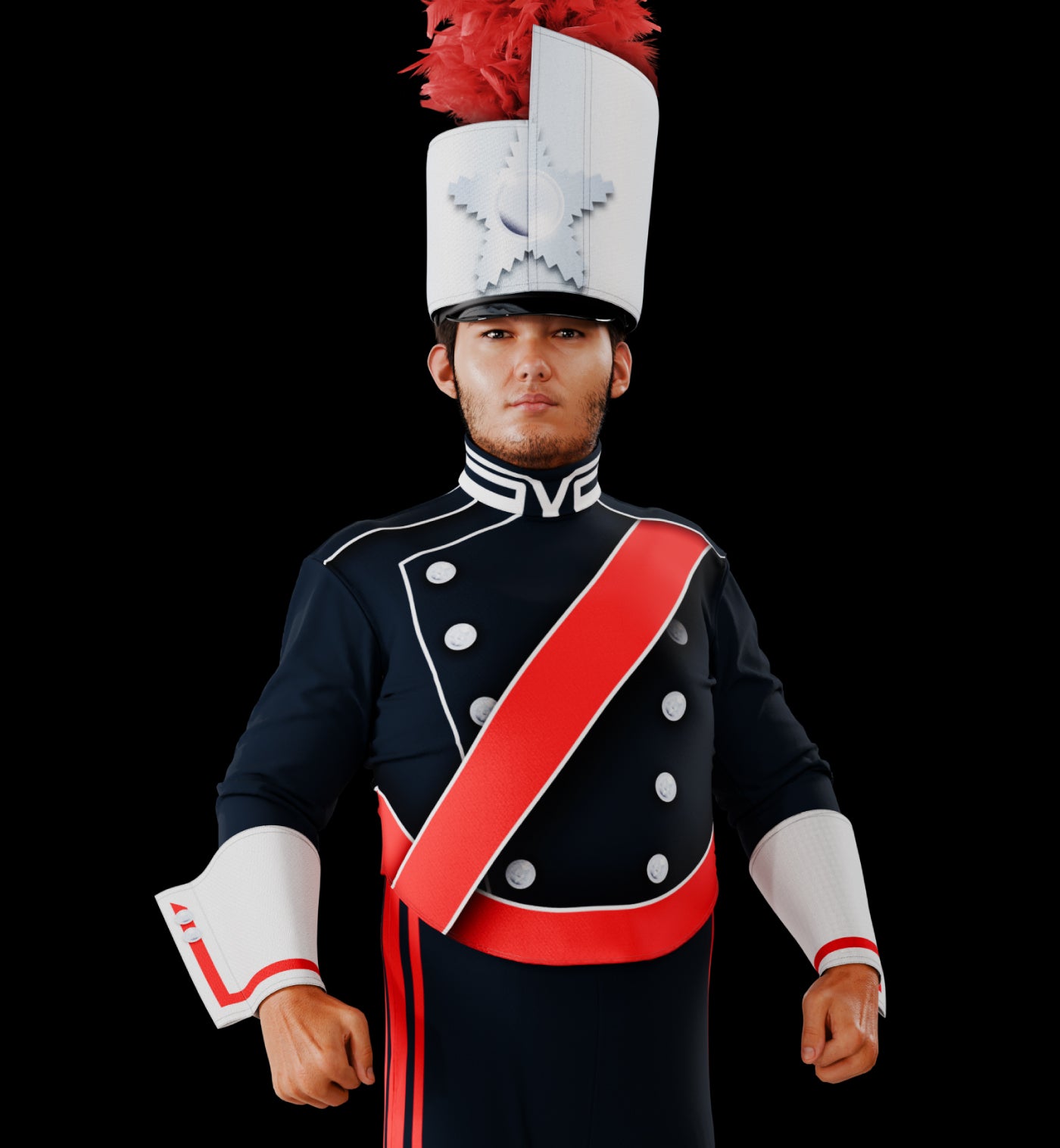Marching Top, Bibber, Shako Cover, Hip Cape, Shako, & Plume