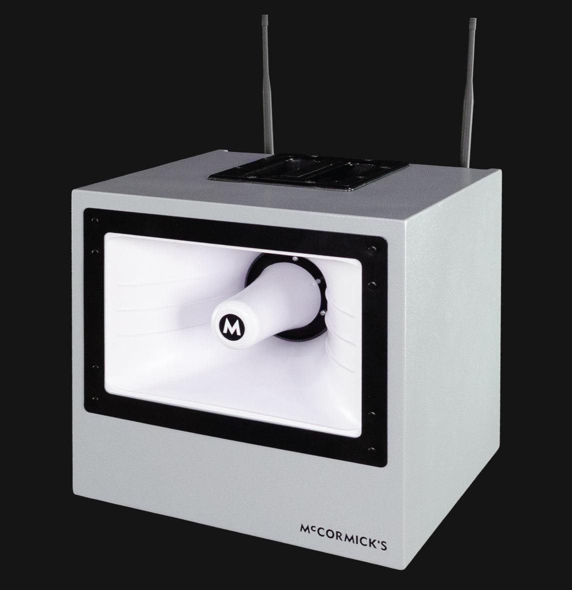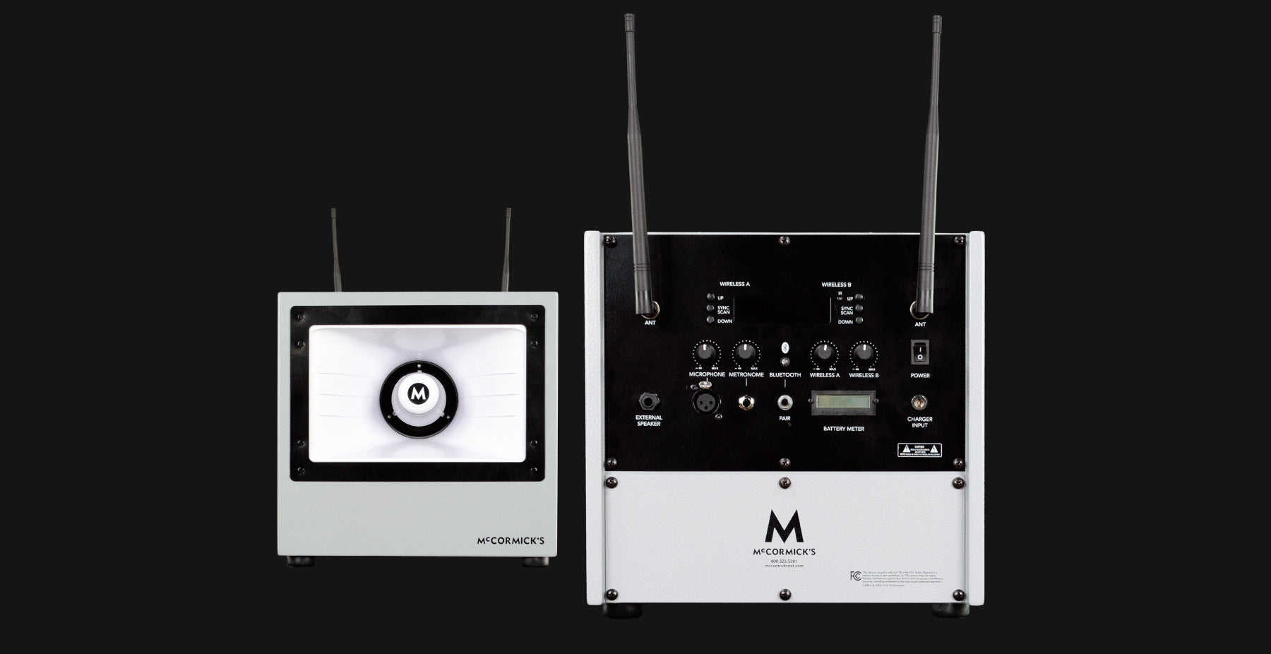 McCormick’s wireless microphone system built-in, with 500 ft range