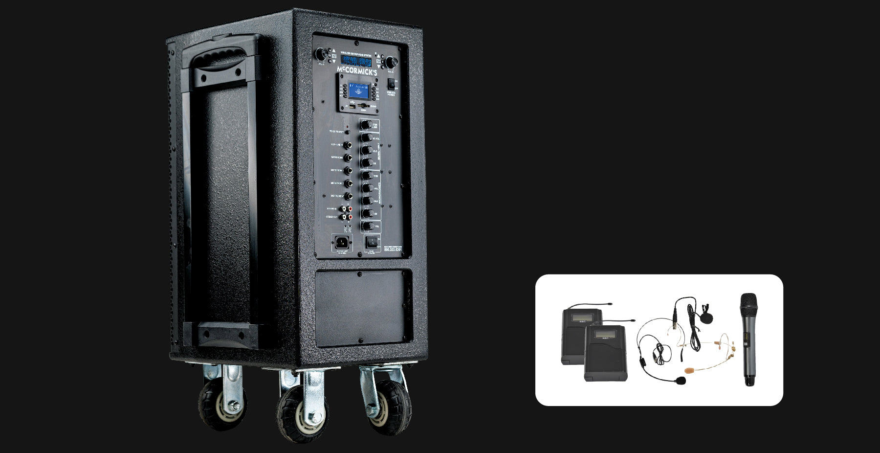 - McCormick's best-in-class dual wireless microphone system built-in - Includes your choice of two wireless microphones and transmitters